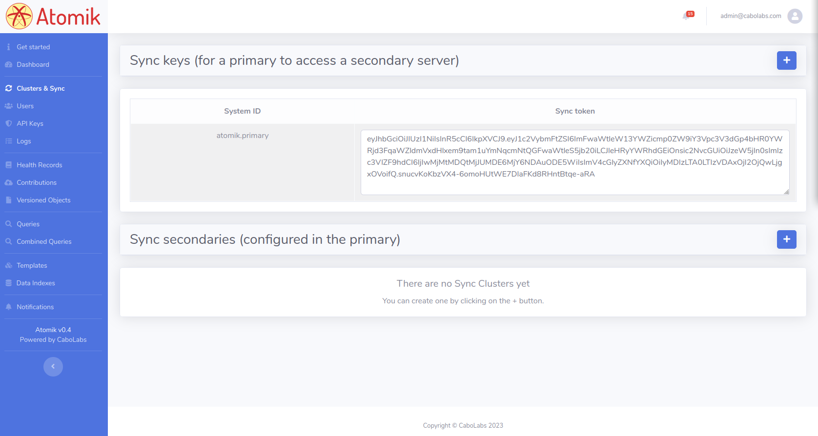 To define an Atomik instance as a secondary, you only need to generate the Sync API Key that will be configured in the primary to grant access to the Sync API of that secondary. The Sync API Key is actually an API Access Token.