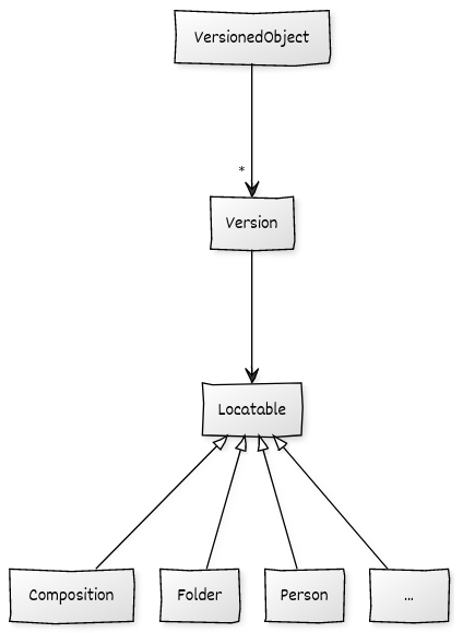 When one of those objects is created, a VERSIONED_OBJECT wrapper is created for it. The VERSIONED_OBJECT is the container for all the VERSIONs of that specific object. So when the object is created, it also adds one VERSION to the VERSIONED_OBJECT, which is the first version of that object, and the VERSION contains the object itself.